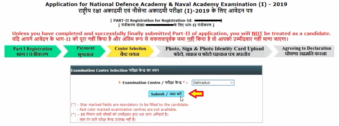 Candidates who belong to SC/ST and sons of ex-serviceman/ JCO/NCO and Other Ranks of the Army need not to pay the application fee for NDA application form. Candidates claimed for the fee exemption have to click on “YES” in the Fee Exemption claimed Field.