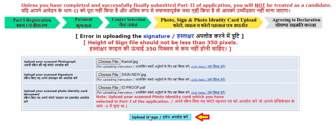 Part II will include : Fee payment, Filling choice of examination centre, Photo & signature uploading.