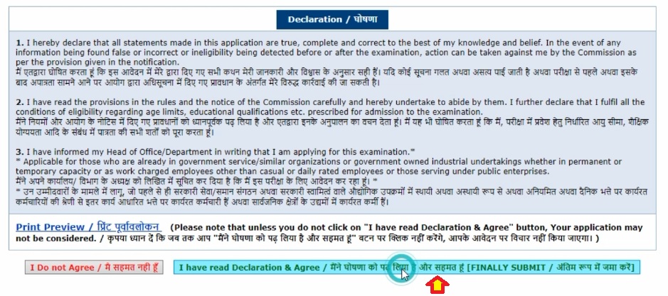 Finally, you will get a declaration form .Read the declaration and click on “I Agree”.