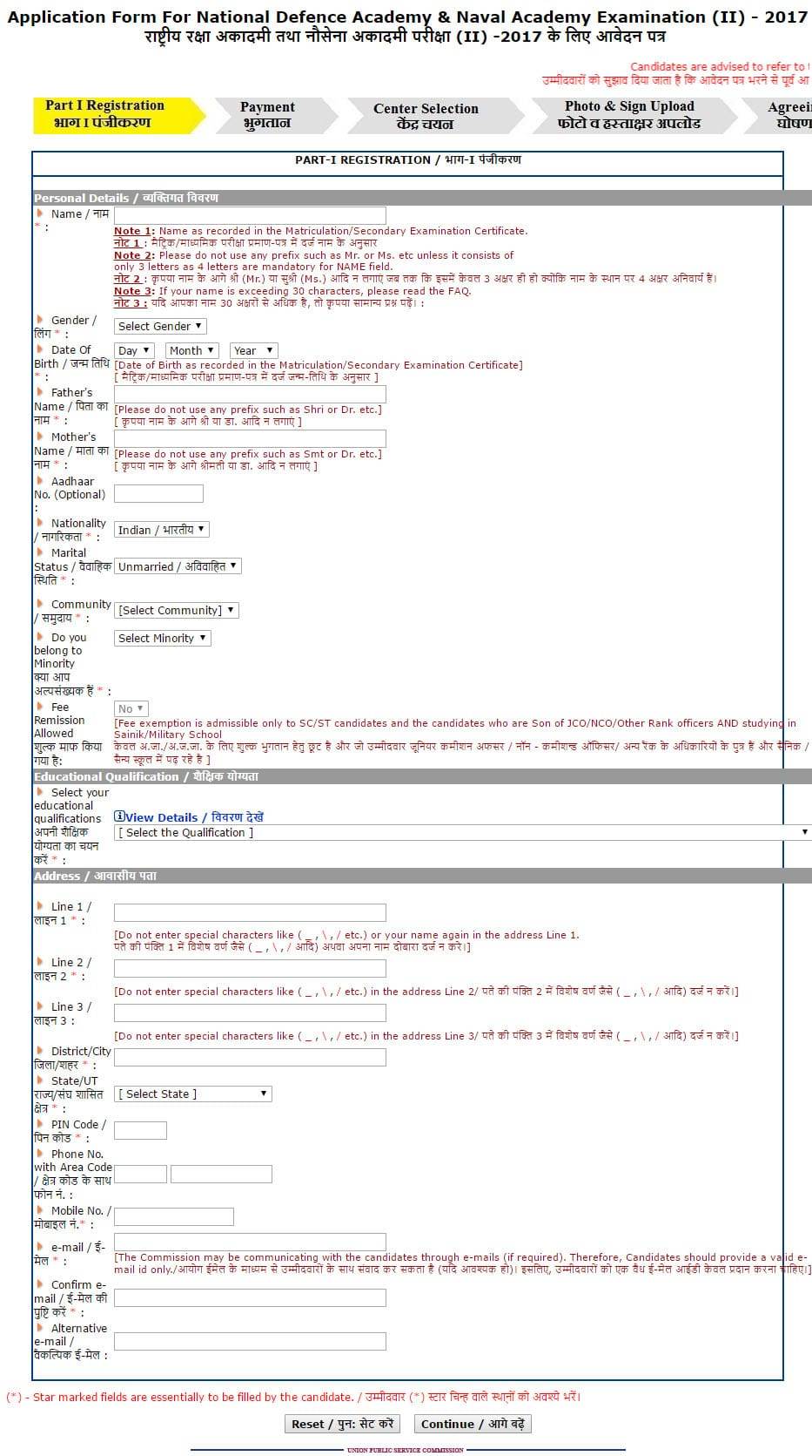 Here we are talking about the Application form. The Application form for NDA examination plays an important role as many of the candidates lose their chance of giving the examination just because they fail to fill the form correctly and hence UPSC rejects their form. So it is very important to know about the form clearly so as to fill it correctly.