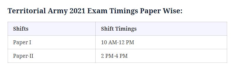 Territorial Army 2021 Examination Pattern